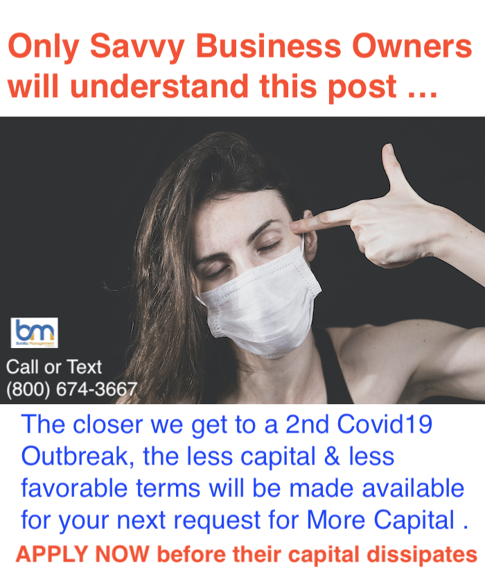 WARNING TO SMALL BUSINESS OWNERS : The widely expected direction of this economy will mostly DRAMATICALLY SLOW DOWN. That means bank & Lenders will REDUCE CREDIT & CAPITAL. That means Small Business Owners really look at their overall business and DECIDE or HEDGE their cash flows . That means Small Business Owners need to BORROW MAXIMUM LEVEL of BUSINESS CAPITAL. The banks and lenders will , widely expected, stop unused lines of credit, abort unfunded loan offers, or at least increase loan applications.